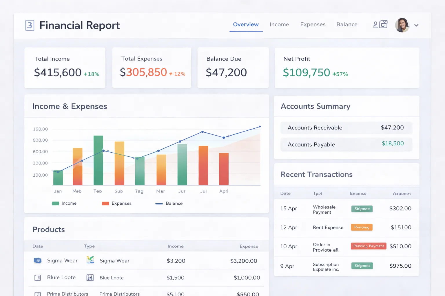 Generate professional financial statements at any time. All reports are audit-ready and can be customized for your reporting needs.