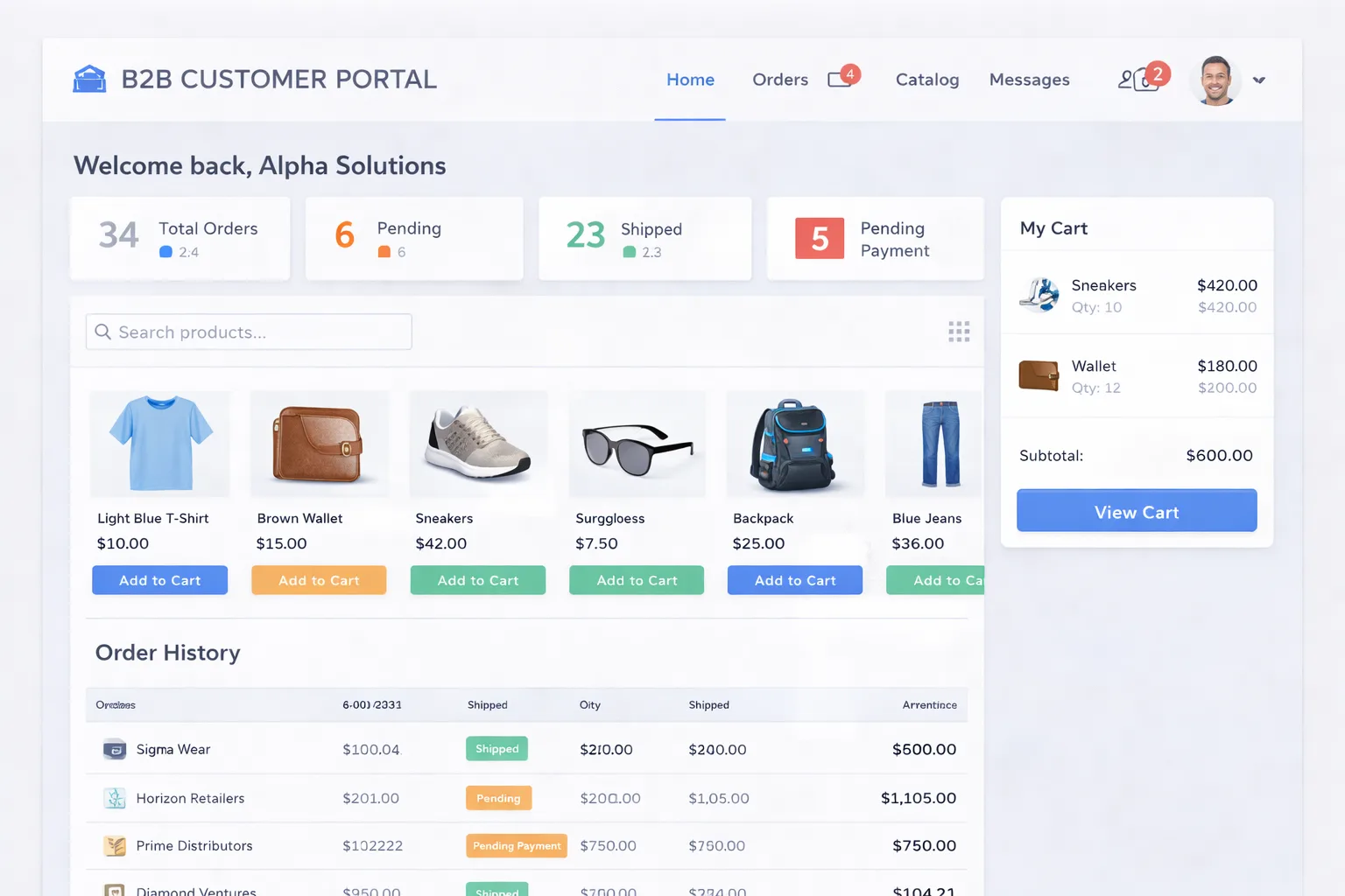 Your B2B customers can place orders, track shipments, and manage their accounts 24/7 without calling your sales team.
